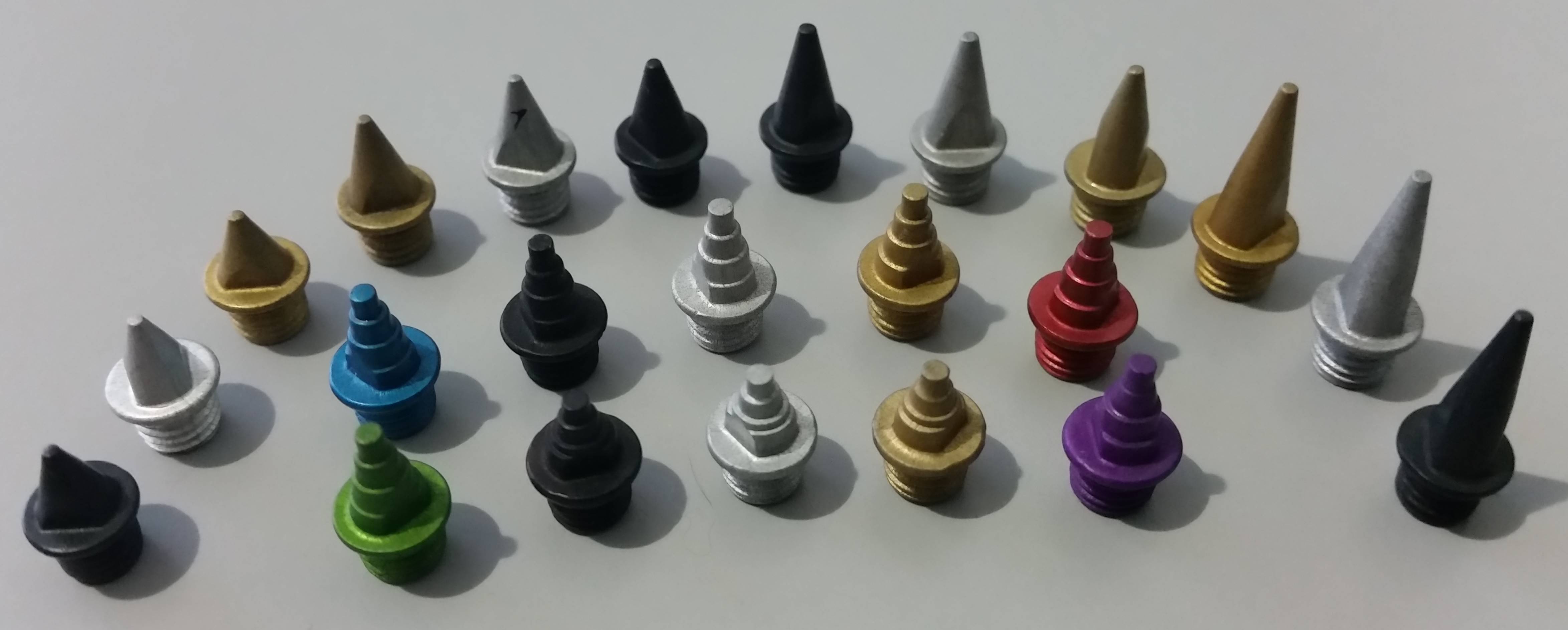 CHRISTMAS TREE SPIKES – designed to compress the surface of the track to provide energy back to the athlete. Suitable for short sprint/hurdles, middle distance and pole vault events.